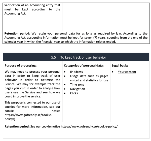 • Accounting firm – Gofrendly may share personal data contained in invoices and accounting information with our accounting firm, which has been engaged to Gofrendly to fulfill its obligations under the Accounting Act.